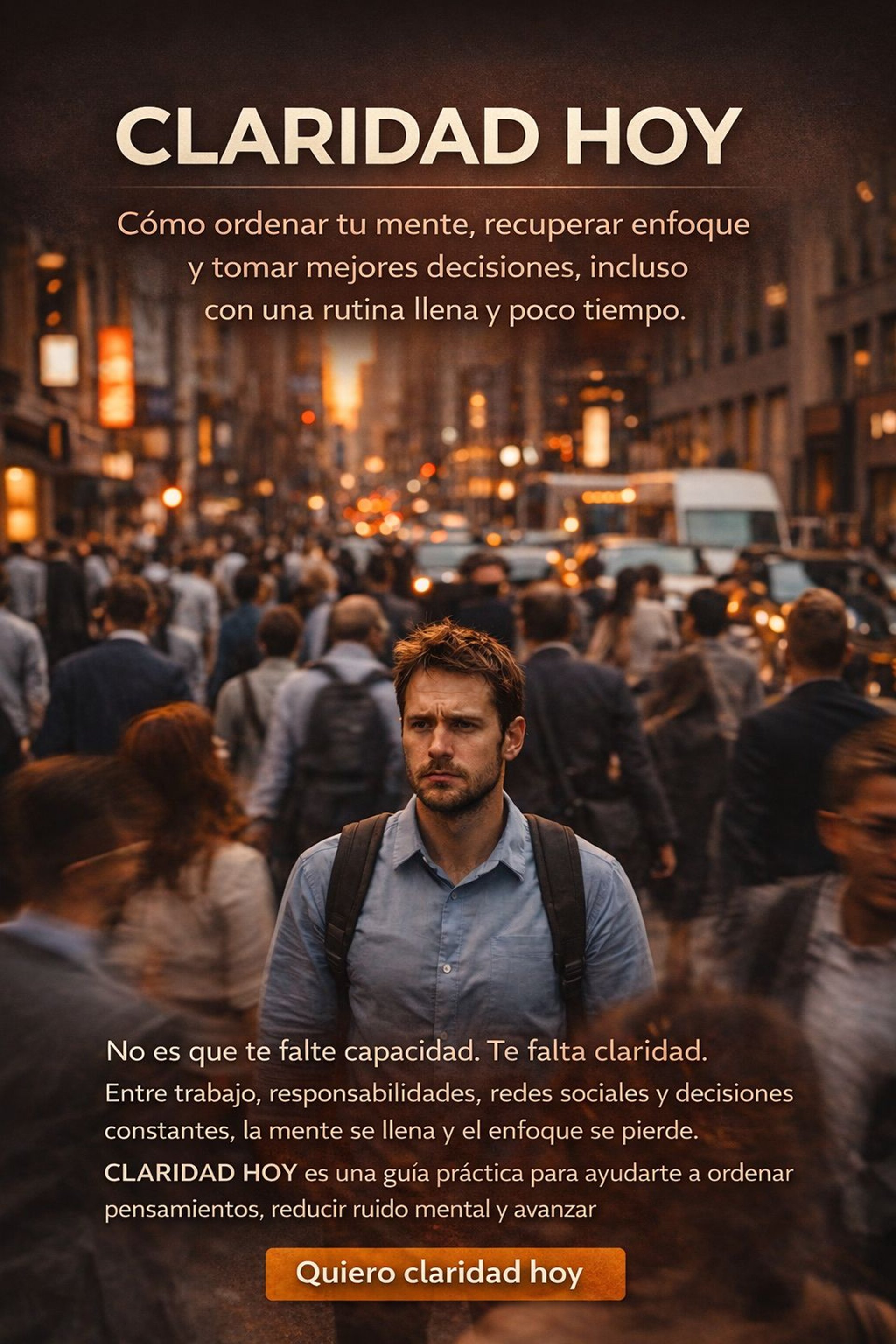 CLARIDAD HOY es un ebook práctico creado para personas ocupadas que sienten la mente saturada y dificultad para enfocarse.